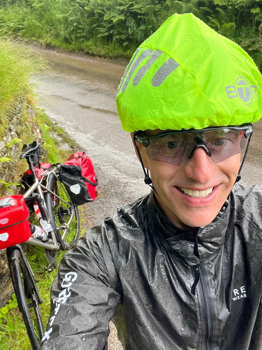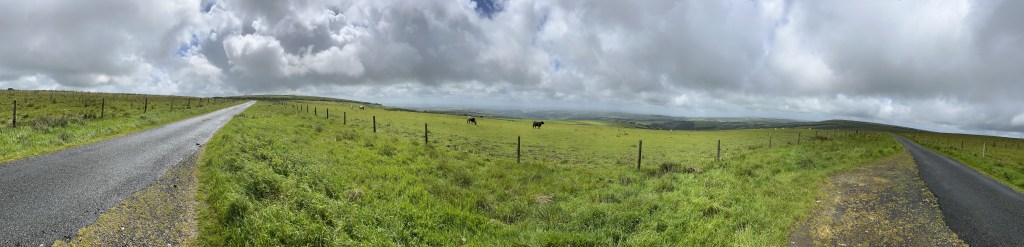 Eventually I found the way out of Barnstaple and started the longest climb so far to the peaks of Exmoor. Whilst the climb was hard, it was made a bit more interesting when the heavens opened in a Singapore style series of downpours. This meant that my waterproofs were on, then off, then on again, whilst trying to negotiate a seriously long climb. Still – it took my mind off the hill. A lovely, straight forward pub lunch (the Bridge Inn, Dullerton) was just the ticket to restore some energy and chat with friendly faces after miles and miles with only sheep and cows.